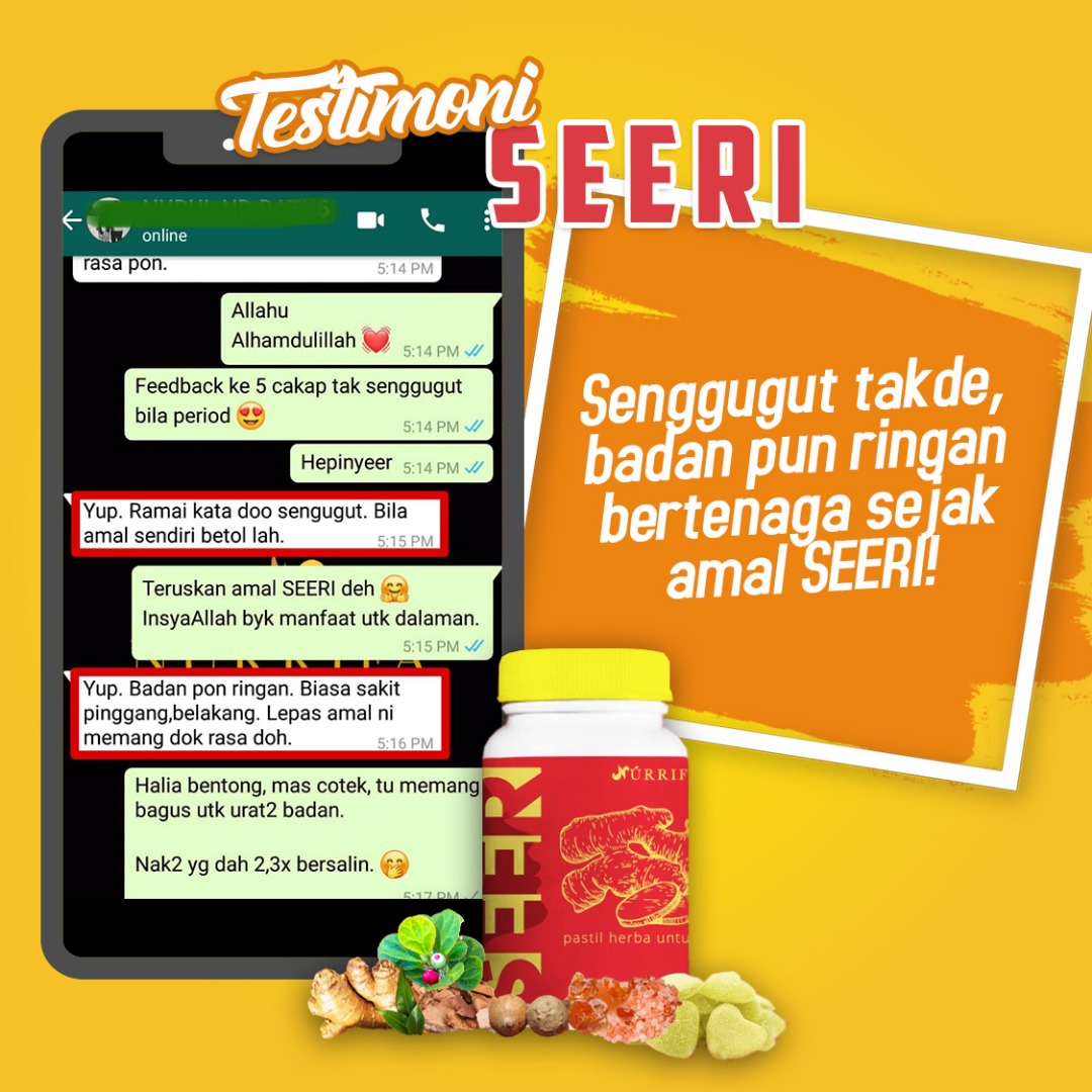 SEERI diformulasi khas dalam bentuk pastil bagi memudahkan para wanita untuk mengamalkan jamu setiap hari dengan konsisten tanpa alasan.